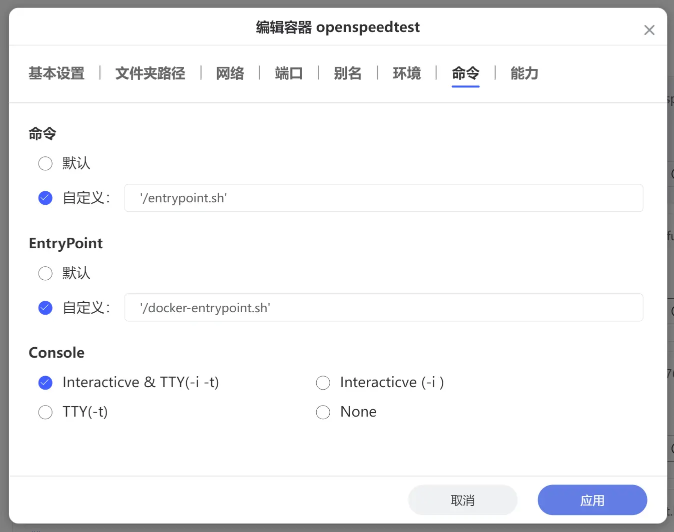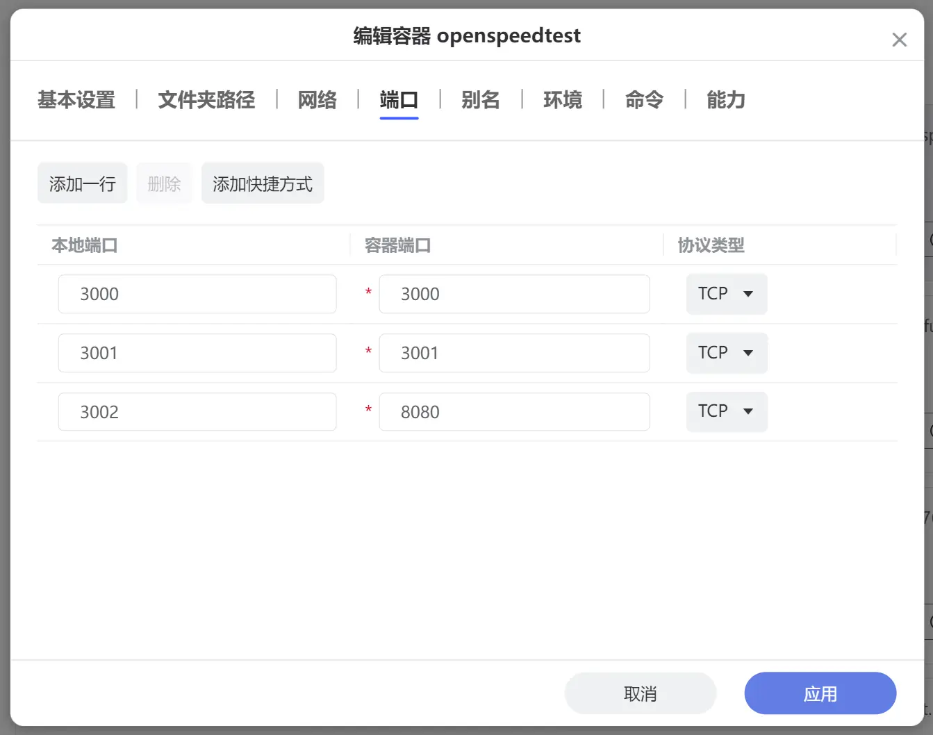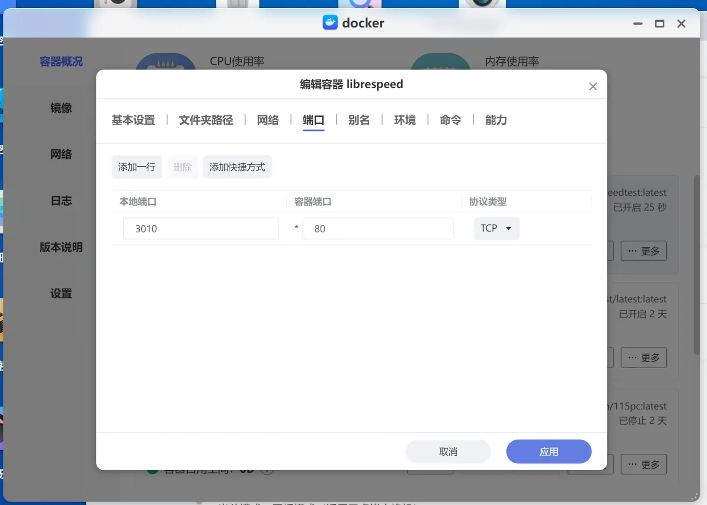 文件夹路径要设置一下,建议在SSD中建一个docker文件夹,这是以后专门放docker相关的文件,然后在里面再建一个openspeedtest。