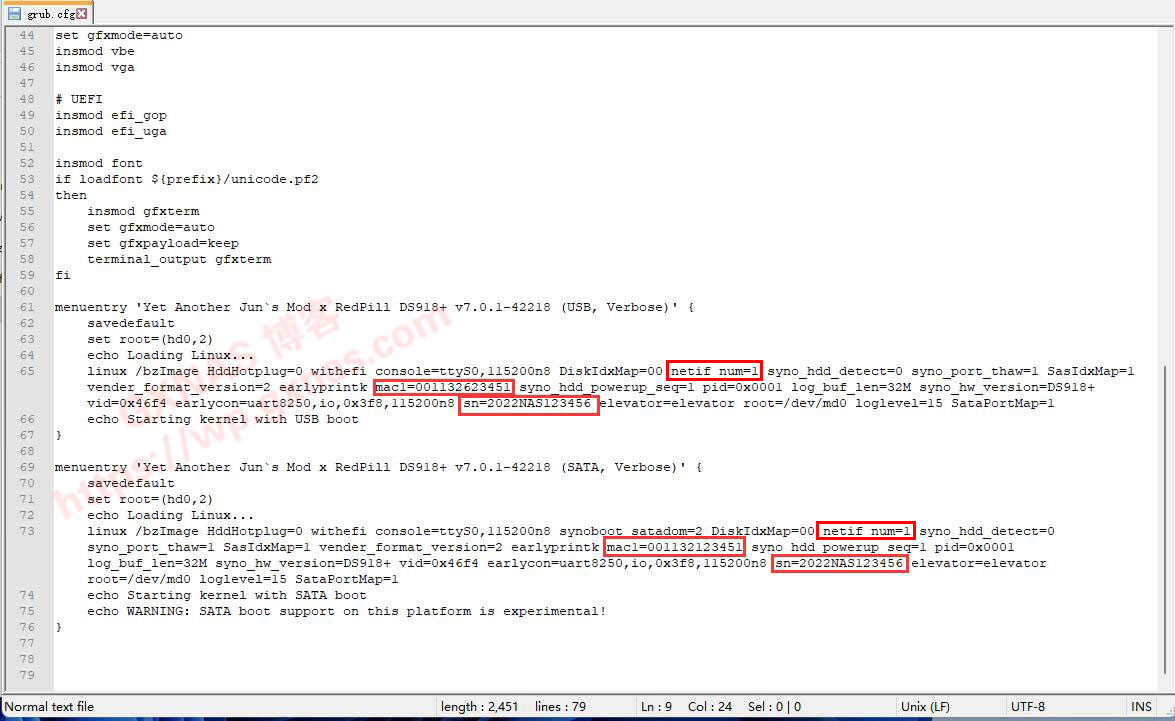 洗白为修改引导中的user-config.ym或grub.cfg文件,将我提供的SN和MAC替换到grub.cfg或user-config.yml对应位置,就完成了 注:user-config.ym在硬盘第一个分区下面